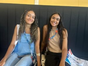 As estudantes de pedagogia Nair Luiza e Nath Luane aguardavam o início de uma palestra na Arena Cultural quando a Filarmônica Augusto
