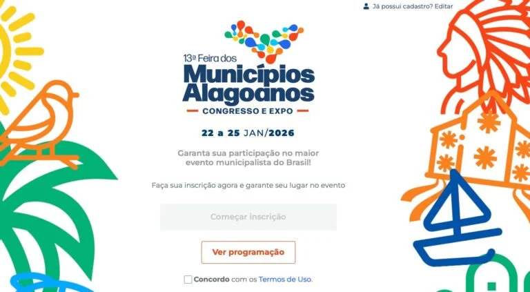 A Associação dos Municípios Alagoanos (AMA) abriu oficialmente, nesta sexta-feira, dia 2, as inscrições para o Congresso da 13ª Feira dos Municípios Alagoanos 2026, considerado o maior evento municipalista do Brasil. O congresso será realizado entre os dias 22 e 24 de janeiro de 2026, integrando a programação da Feira dos Municípios Alagoanos, que acontece […]
